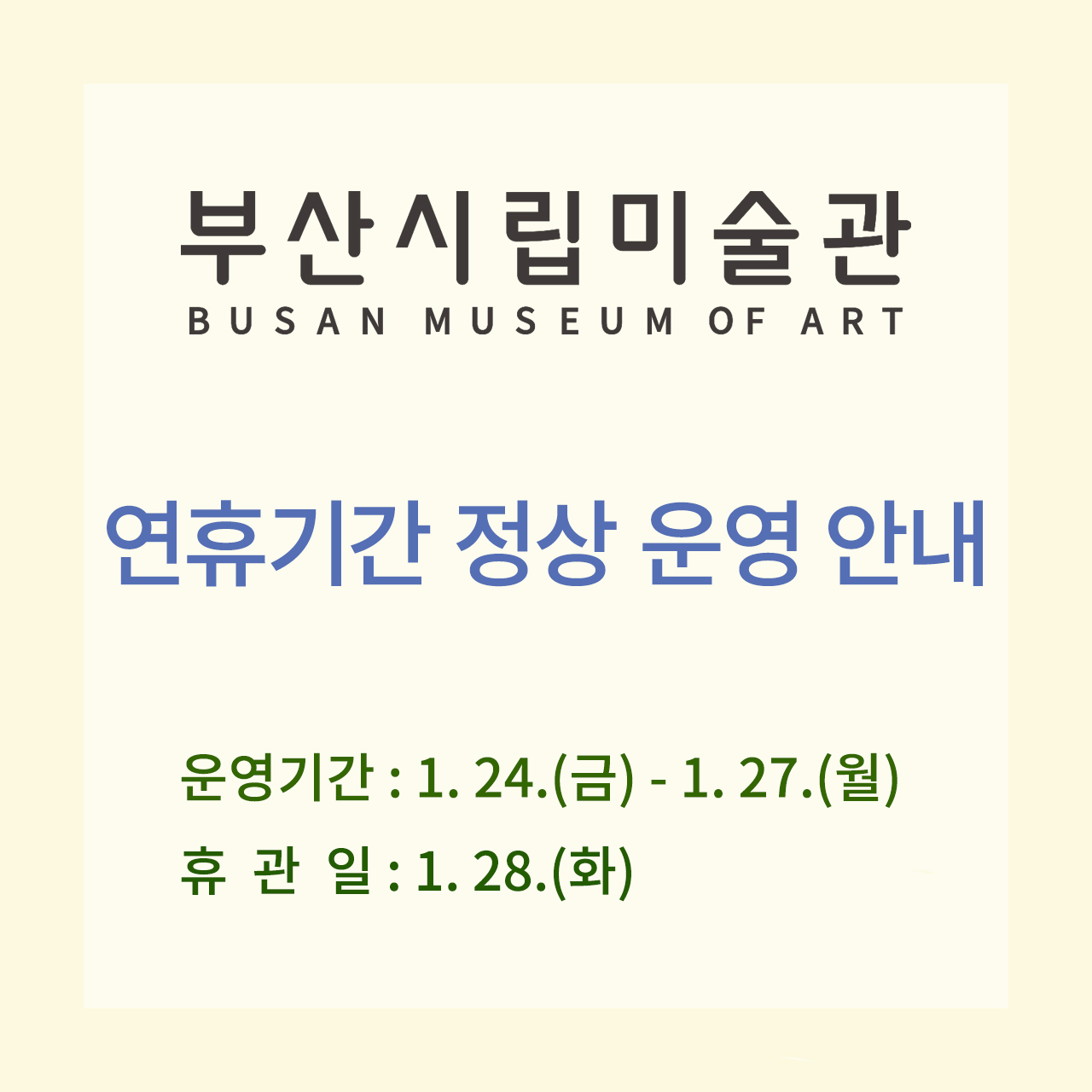 설 연휴기간동안 부산시립미술관 정상 운영합니다.